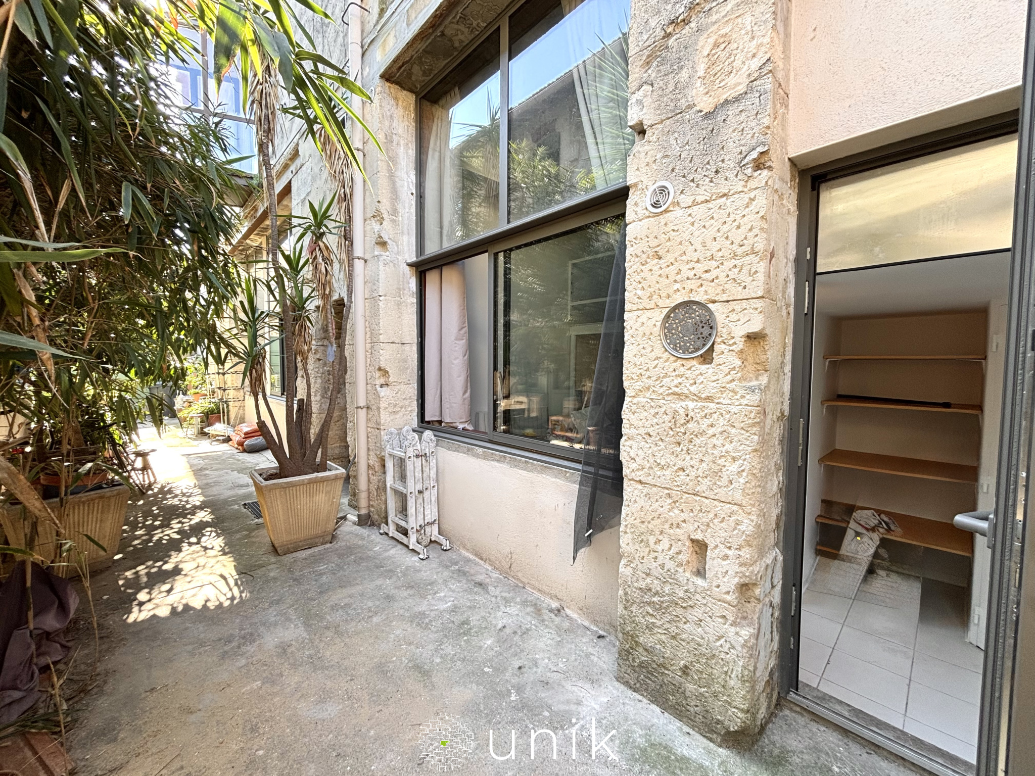 À l’extérieur, vous aurez la possibilité de profiter d’un petit espace devant le pas de porte pour installer une table et deux chaises, parfait pour un café en plein air, sans pour autant constituer une terrasse privative.