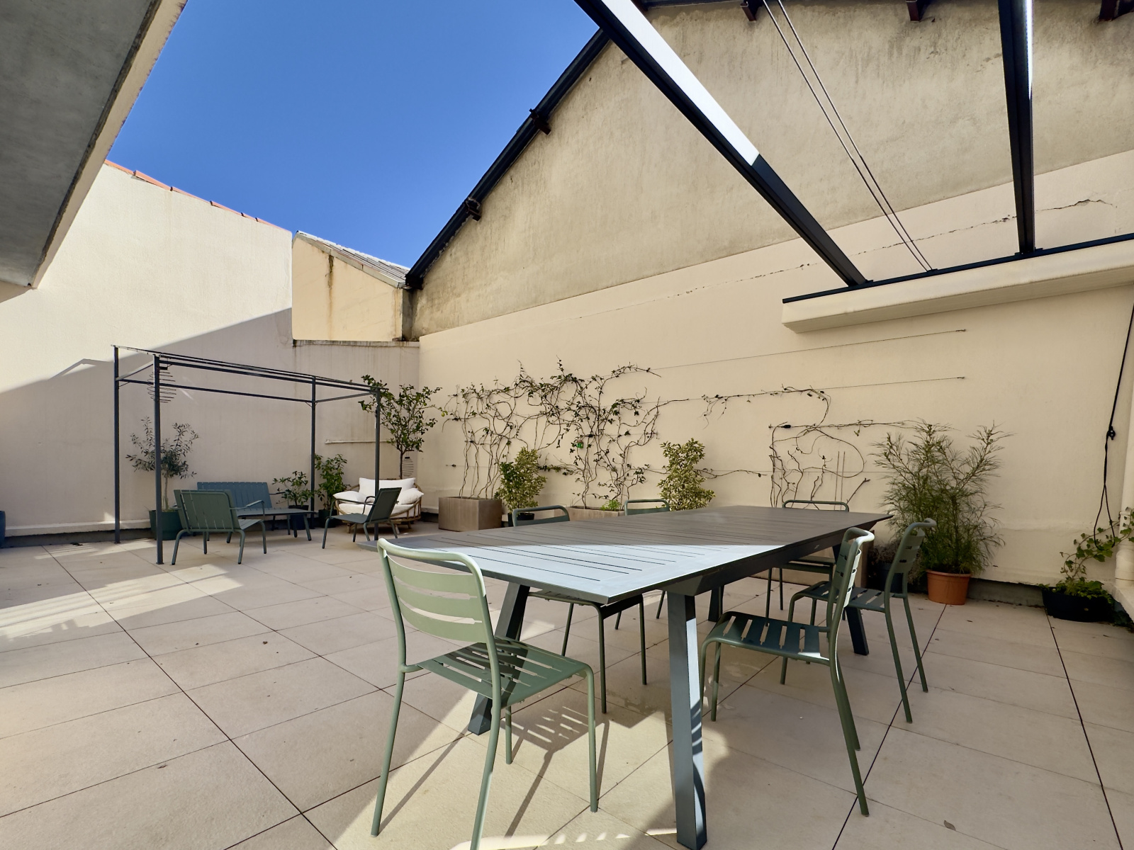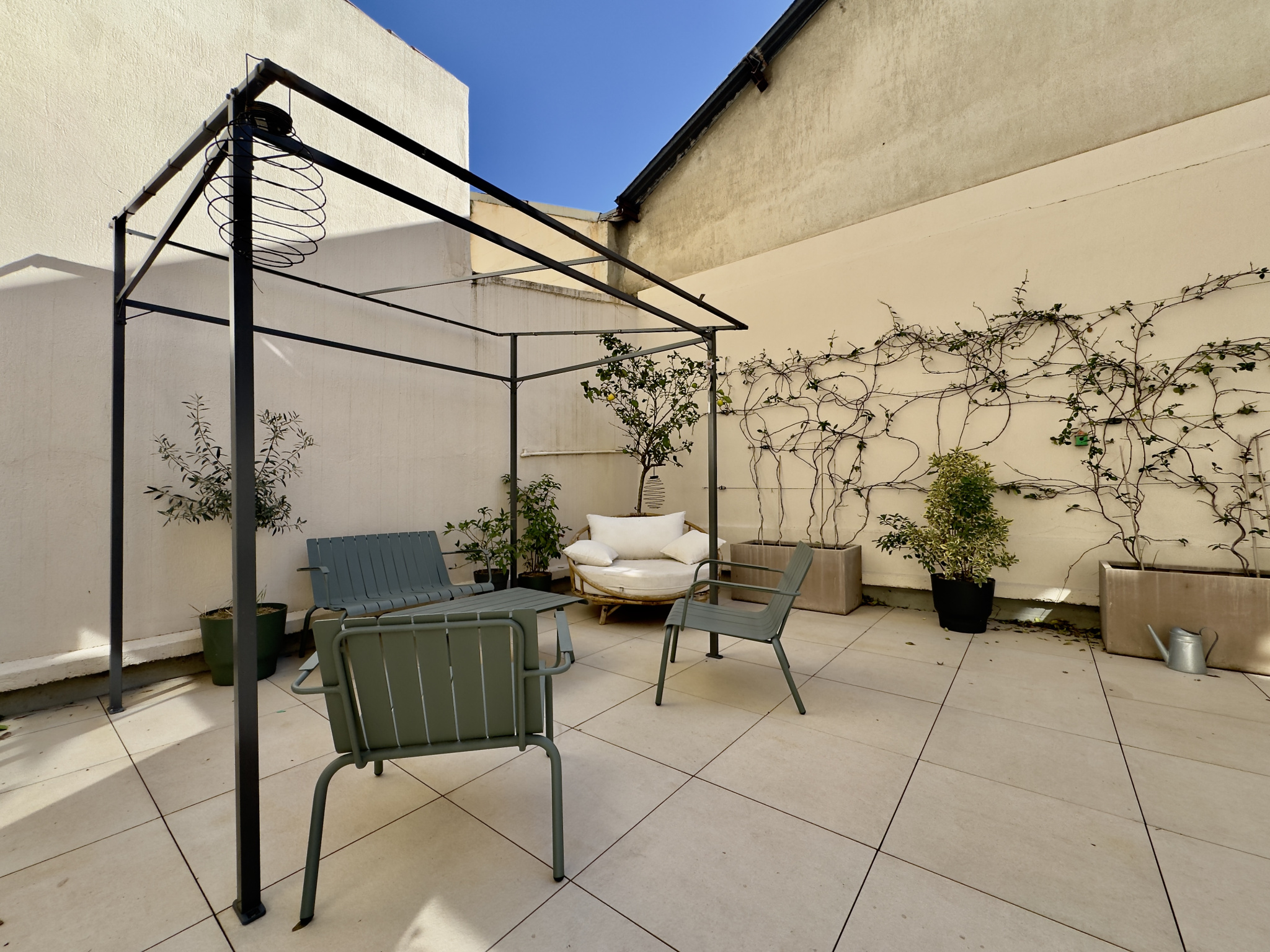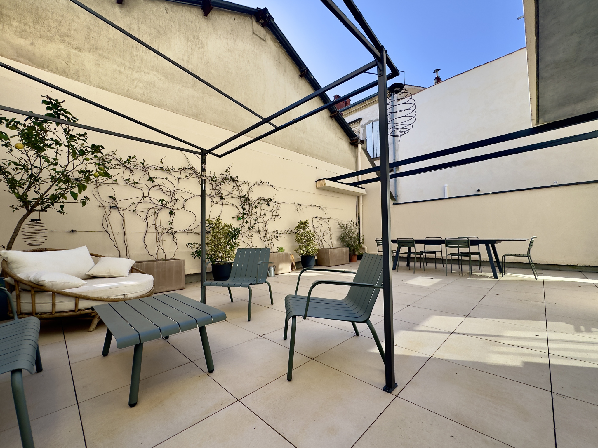 La pièce de vie s'ouvre sur une magnifique terrasse de 57m2 avec pergola, introuvable aussi proche du centre historique !