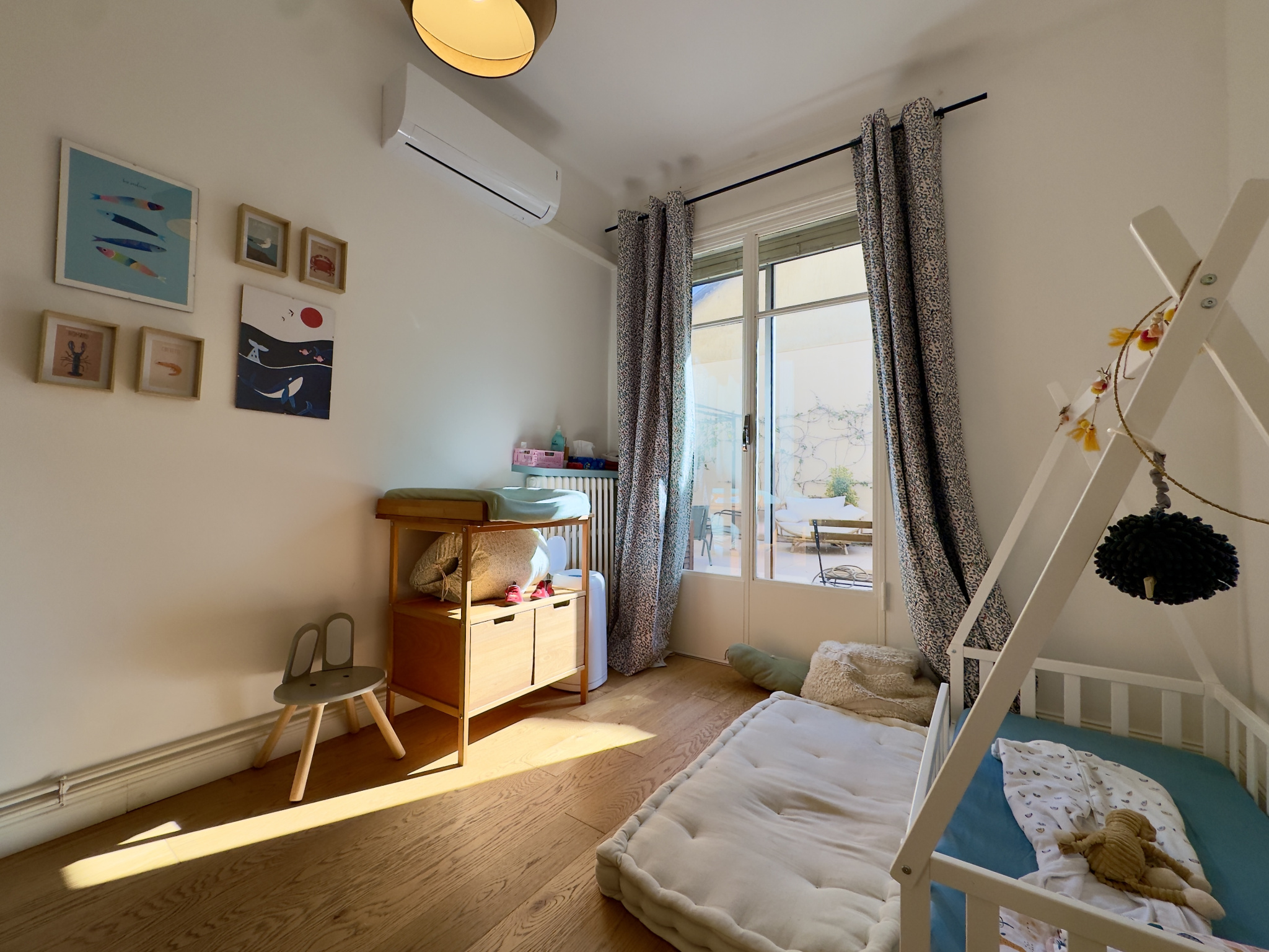L'appartement est intégralement climatisé et bénéficie d'une exposition Est / Ouest, garantissant une bonne luminosité toute la journée.