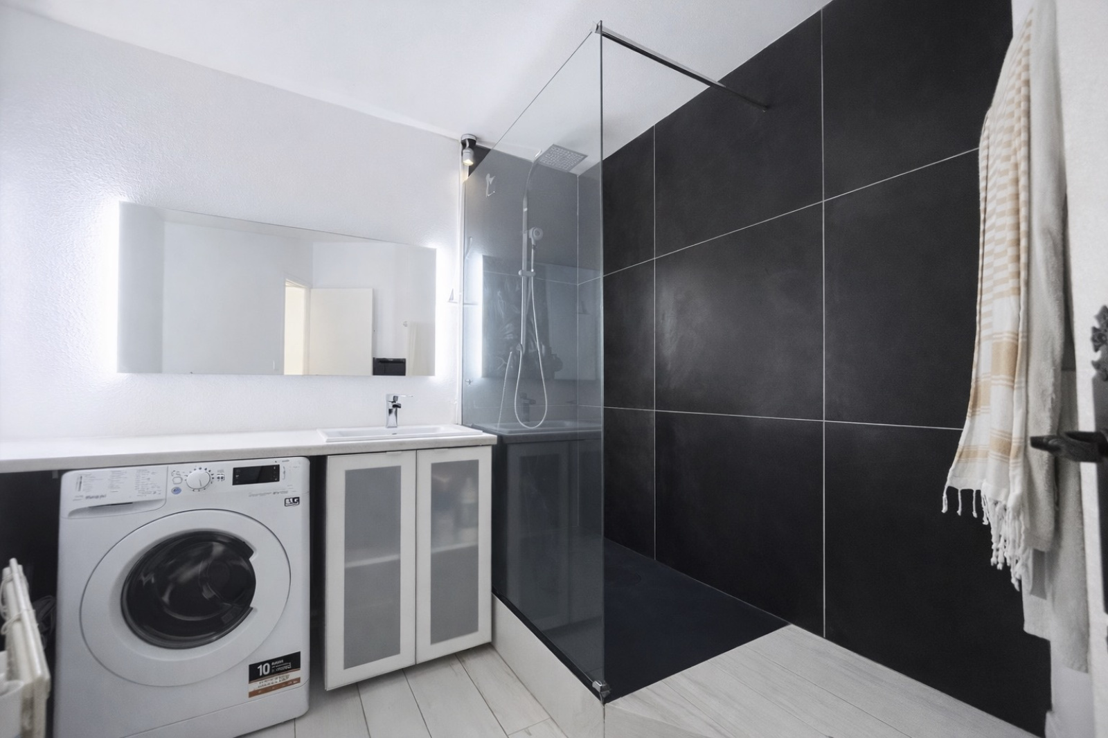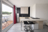 L’appartement offre un agréable espace de vie moderne et lumineux, avec un séjour ouvert sur une terrasse agréable offrant une vue dégagée sur les jardins et le port et d'une cuisine ouverte équipée, avec bar et tabourets, crée un espace convivial parfait pour recevoir. L’ensemble est complété par : une chambre confortable avec un grand dressing aménagé (possibilité de créer un espace bureau), d'une salle d’eau moderne avec grande douche à l’italienne et WC séparé.