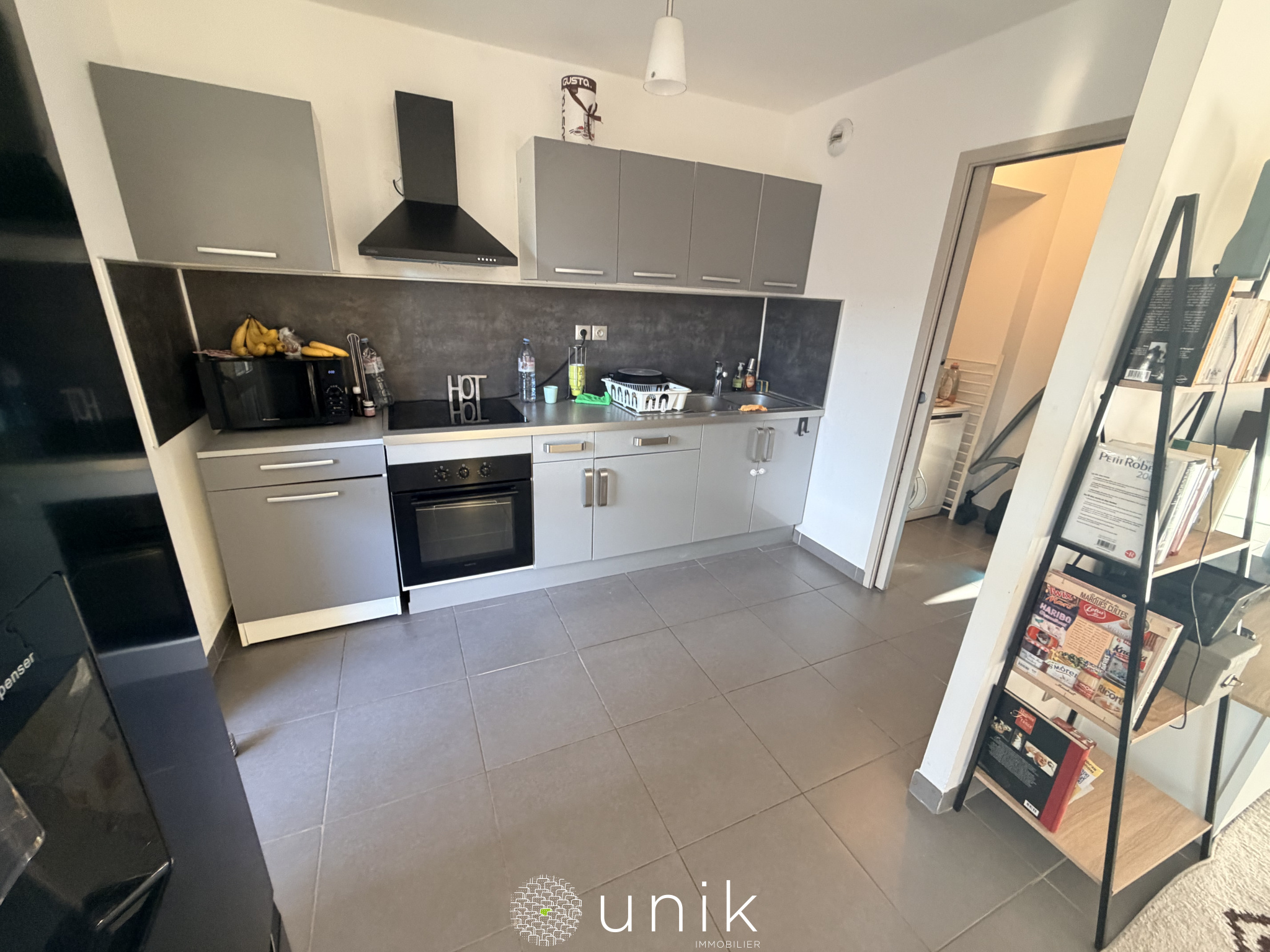 Dès l’entrée, vous serez immédiatement séduit par une agréable pièce de vie lumineuse, bénéficiant d’une exposition Sud-Ouest qui offre une belle clarté naturelle tout au long de la journée . L’espace séjour, chaleureux et bien agencé, permet d’accueillir confortablement un coin salon et un espace repas. La cuisine ouverte, fonctionnelle et conviviale, s’intègre harmonieusement à cet ensemble. Elle dispose également d’un espace buanderie et de rangements, particulièrement appréciable au quotidien.